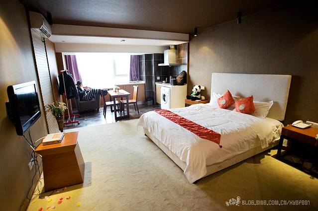到达成都,打的到位于锦江区的爱上成都精品公寓。因为要在成都住三个晚上,所以找了一家感觉更像家的酒店,住上三天。有洗衣机,大窗户,采光不错,房间也很大,有WIFI,就是没有电磁炉不能做饭烧菜。特价100一晚,还是蛮划算的。就是洗澡的电热水器,洗澡热水最多用5分钟就凉了,其他都还不错。