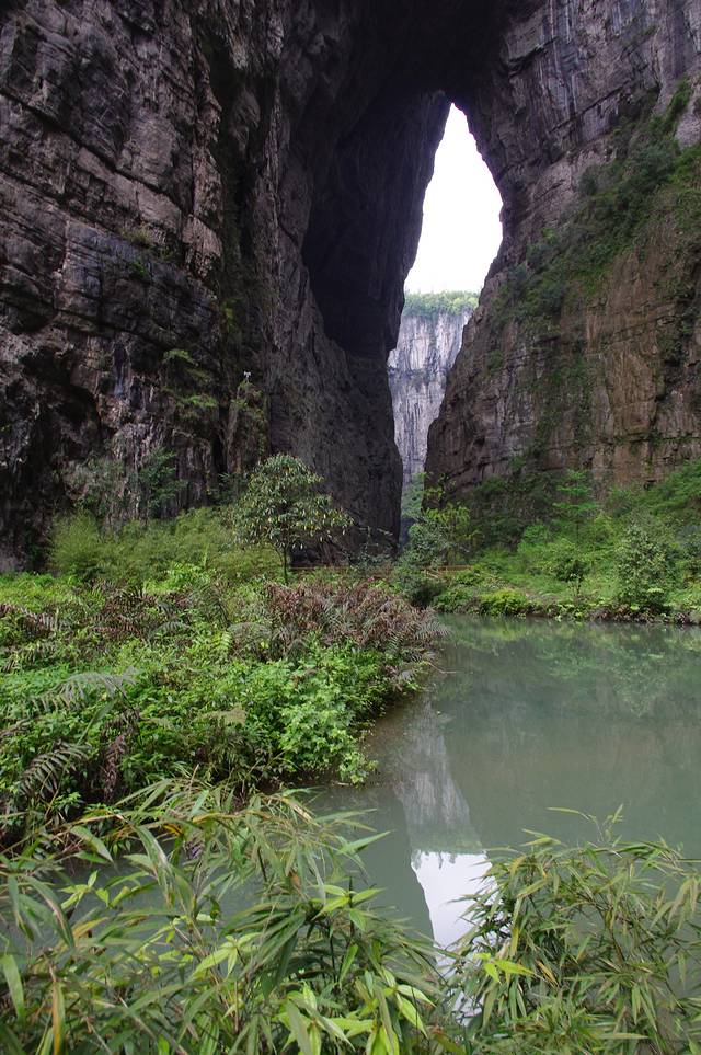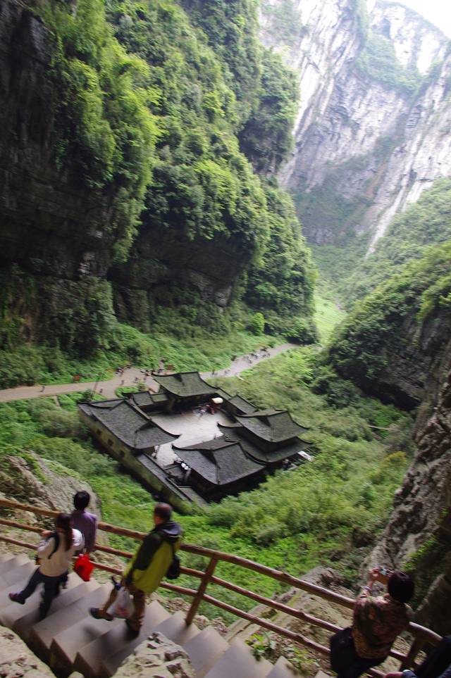 今天一大早就起来,旅行社的来的是一辆中巴车带我们到朝天门码头,把我们仍在那然后就发生了“卖人”的现象,后经半个多小时的折磨终于坐上了一辆大巴车,车上的估计都是去武隆的。一个多小时的路程车到武隆,天生三桥景区其实就在山上,吃完午餐后就开始进入景区。