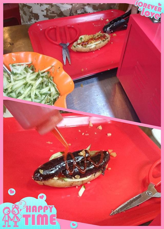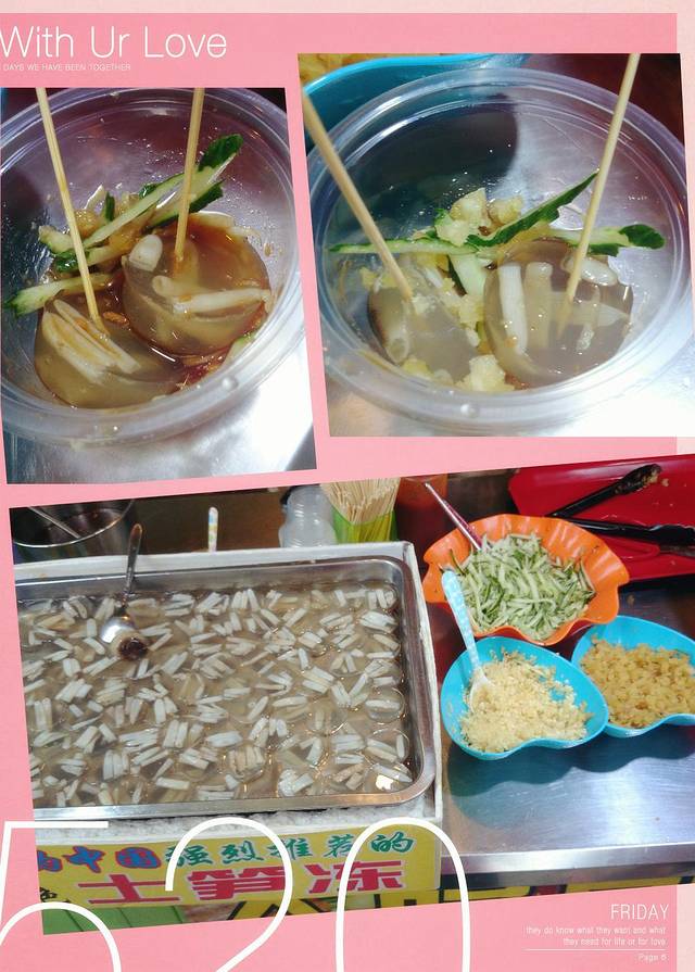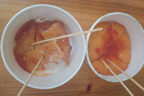 同样的食物比鼓浪屿量多。比如,张三疯奶茶,里面的货比鼓浪屿就多多了;大肠包小肠,在曾厝垵选的黑肠子(说是墨鱼肉),1根抵鼓浪屿上3根。