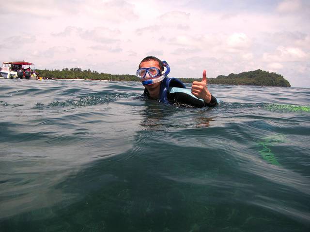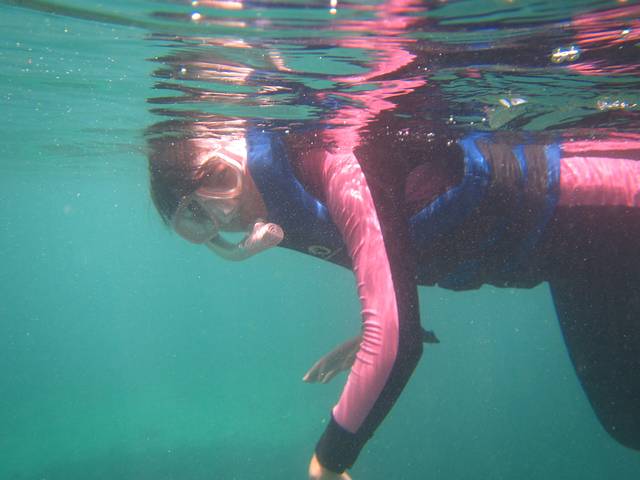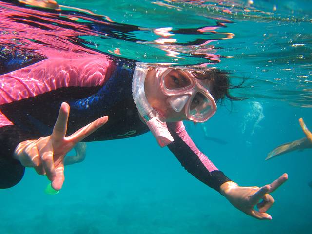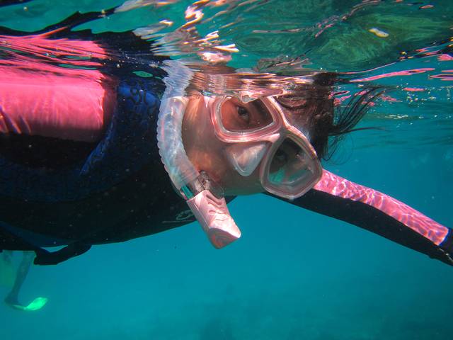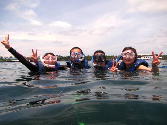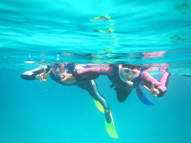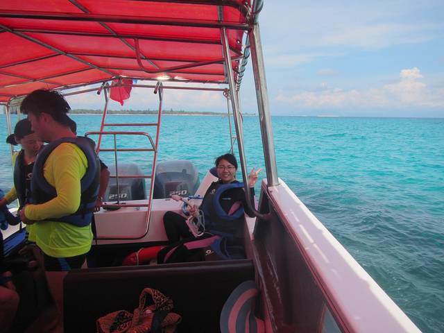 浮潜时间有两段,10:30;13:30,有船载你去外面海中心的几个浮潜点。出海浮潜去~之前在淘宝买了浮潜3宝,其他效果不说,就是防晒还是很有作用的,特别适合像我爱玩又怕晒黑的。