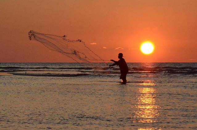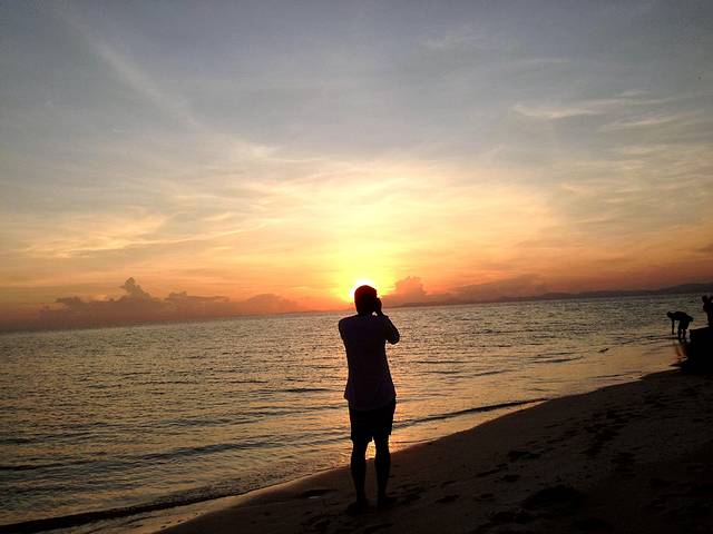 走到海边,等待海上日出,一直看着月亮慢慢变淡直到消失,同时天空慢慢变亮,天边泛起红光,看着自然美景算是给早早醒来的我们一丝安慰。