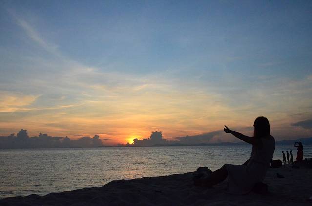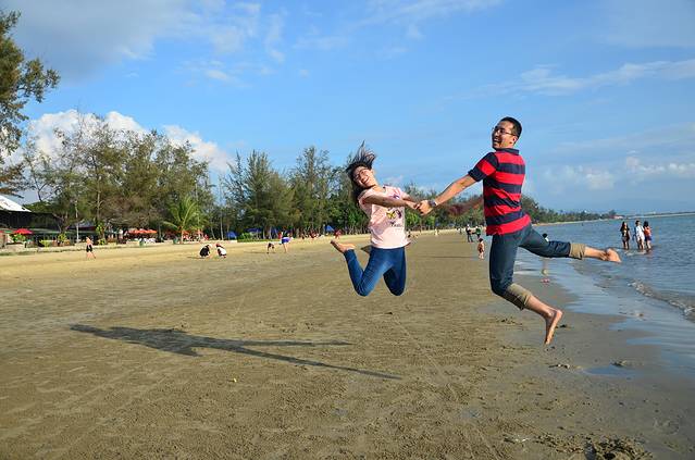 这次旅程我们在亚庇市区都住同一家酒店(明花园酒店),当地4星酒店,在携程可以预定,酒店性价比很高,全酒店都有wifi ,入住酒店后,放下行李还可以美美的睡个午觉,傍晚去香格里拉看日落,沙巴是世界三大最佳观赏落日的处所之一,傍晚时分沙滩边人们静静等待,最著名的就是在这丹绒亚路海滩,有专门的日落吧,惬意地靠在躺椅上,喝着饮料,欣赏落日。就是这样的落日也足够惊艳,一抬头,完全被震住了,看照片就知道我们很兴奋了。