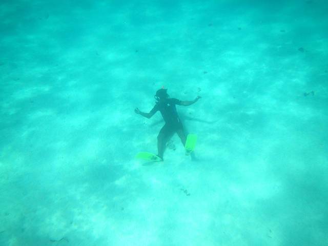 第二次潜水技术明显比第一次好很多,而且还带了面包,好多鱼追着吃面包,各种颜色的鱼,太壮观了!看得我都忘记放开手中的面包了,结果被鱼咬了一口。。。