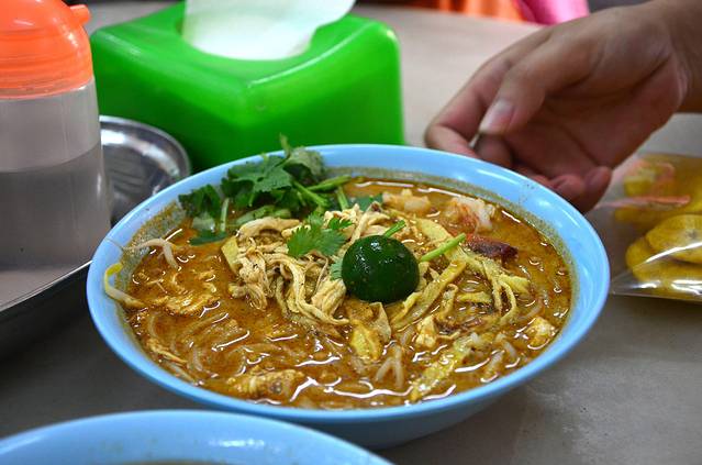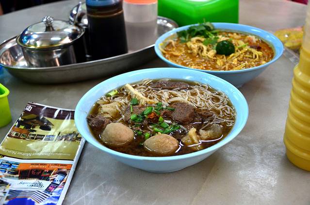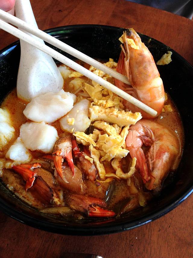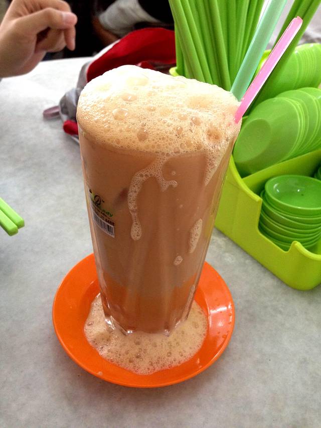 早餐- 误打误撞来到怡丰茶室,这里最出名的就是叻沙,牛杂米粉,拉茶,金桔茶,都尝试过,真的很值得推荐。叻沙的味道很特别,喜欢咖喱加椰浆,金桔的味道。牛杂米粉比我在广东吃的都正宗,拉茶(我们叫它呕泡奶茶,因为品相真的很多泡泡冒出来啊)茶味很浓,我喜欢,另外出名地道饮品-桔仔冰,就是很淡的冰茶,很适合配搭重口味的叻沙。,在沙巴这么热的地方,喝一杯很解渴啊!没有想到刚下机就吃到这么满足的早餐,心情大好!