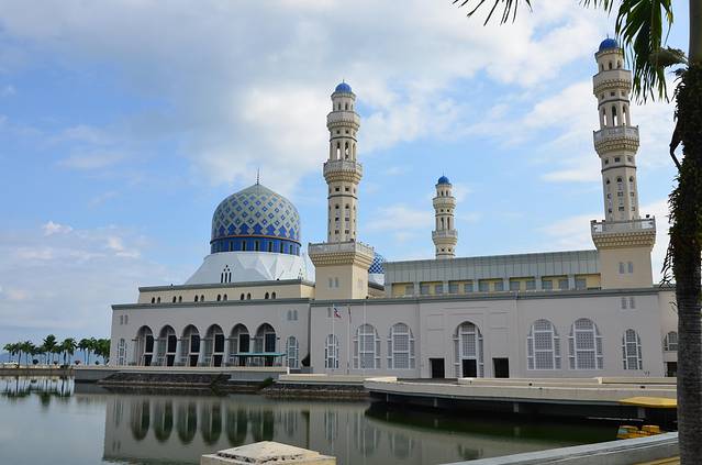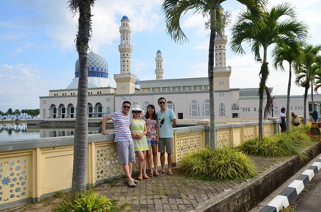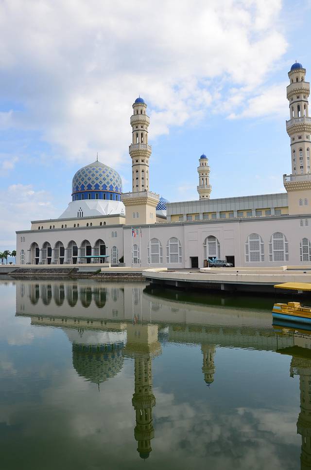 沙巴清真寺建于里卡士湾的人造湖上,感觉有如浮在水面之上,因而得到“水上清真寺”的美称。去神山的路上经过水上清真寺,我们就在外面拍照留恋了!蓝天白云下的清真寺真挺好看的。