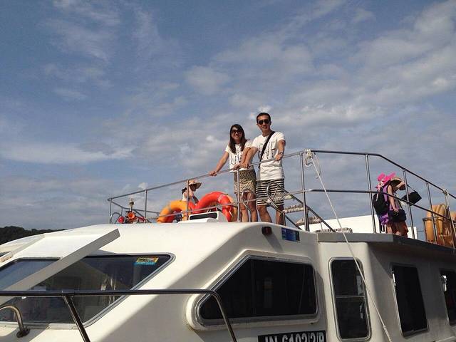 七点从酒店出发,一个半小时后到达码头,工作人员会让我们签一份确认书还是保险之类的,然后就安排上船了。