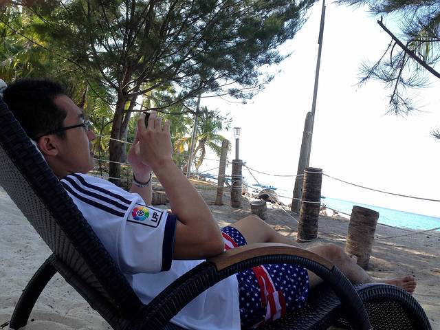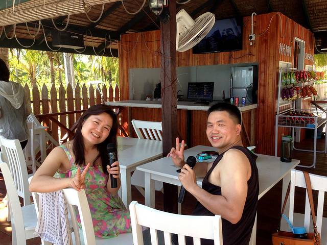 潜水回来,我们要好好感受下在岛上剩下的时光,度假村还提供免费k歌,面朝大海k歌还是第一次,想不到岛上的歌都是中国好声音,基本想到的歌都能找到。K歌的K歌,吹海风的吹海风。。。好自在