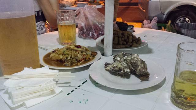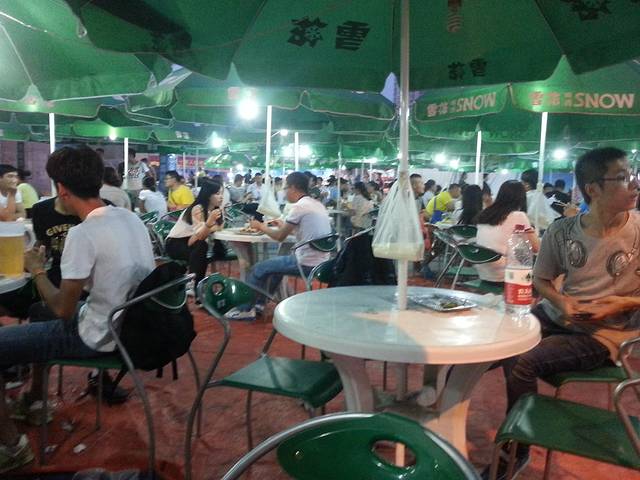 打车回酒店的时候,在附近看到一大片烧烤夜市摊,果断和朋友一起下车吃吃海鲜哈哈扎啤,不算贵,俩女生吃的也不多,花费85元,九点多吃完之后步行回酒店休息