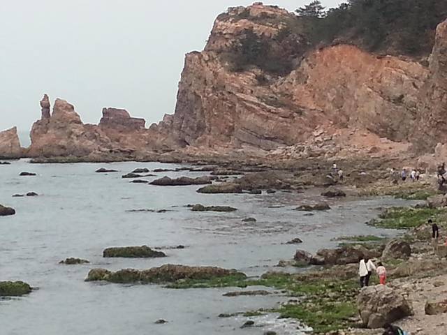 渔家乐的大姐在渡口接的我们,渔家乐的名字我忘记 了,离渡口很近,和朋友一起要了个带独立卫生间的双标,含三餐每人是150元(不含独立卫生间的是每人100元),一心想吃鲅鱼饺子,结果店家说人太多没办法包,到了的时候已经12点半,大家都吃完了,和我们同时住店的两个女孩一起吃中饭,每人两个海菜包子和海带清水汤和一碟小咸菜,跟想象中的午饭差距不是一般的大,包子味道还可以只不过太简陋了一点,房间也是一股潮潮的味道。这个渔家离我们要去的景点有点远,我们四个女生商量了一下包了大姐的车总共是140元,到了景点之后发现包车还是比较明智的选择,打车的话肯定不止这个价格