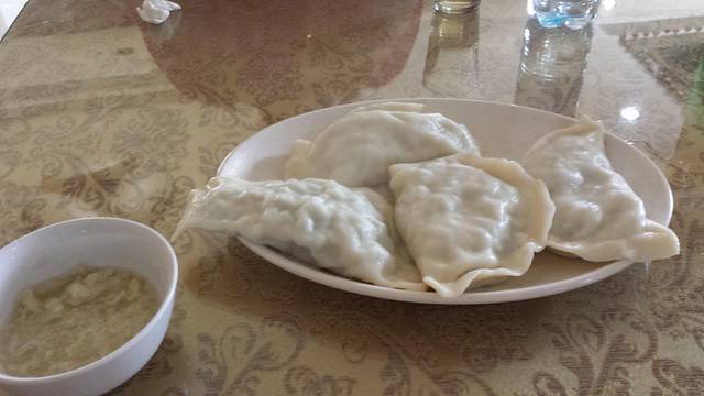 吃货的境界就是不惜一切代价得找到当地的特色小吃,一直想吃鲅鱼饺子在长岛没有吃上来到蓬莱当然不能错过,当地人给介绍了一家还不错的饺子馆,离建兴小面店不远走路不到十分钟,因为已经吃下一碗面了,只为了尝尝鲅鱼饺子的味道,和朋友一人只要了两个饺子,其实分量堪称是两个包子了,很大,每个饺子5元,味道真心不错