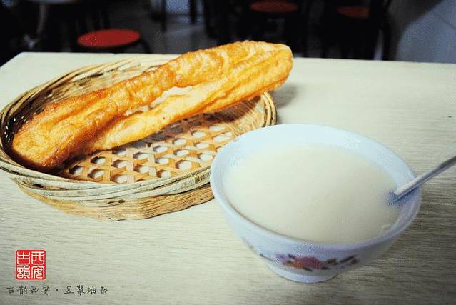 其实办好入住放好行李出来已经10点了,就在附近的大学习巷寻觅早饭,看到一家卖菜夹馍的,但是一看只有土豆丝黄瓜丝太清淡了。。嘿嘿因为我本身也不怎么爱吃面食。。于是看到对面的豆浆油条顿感亲切,就来了份豆浆油条,跟常州的没什么区别,好像油条大一点?!