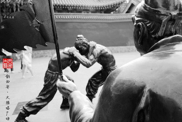 还好回去坐的游5的大巴车,有空调,不然得热晕啊。。到火车站后坐公交到大雁塔站下,过个地道就到大雁塔北广场了,当天的大雁塔顶部在维护。。问了下广场上的工作人员,从北广场走到大唐芙蓉园要半个多小时。。。但是我想看看沿路的风景,好吧辛苦我的腿了,走吧!一路从北广场走到南广场,走到大唐不夜城再到大唐芙蓉园!是差不多走了40分钟的。但还好边走边拍照不觉得,而且沿路都有坐的地方的。为了拍照不能打伞,防晒霜也差不多都没用了。。两天回来就黑了一层,真的西安不是一般的晒。。。上点沿路的照片