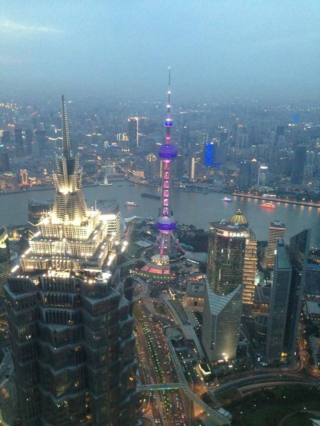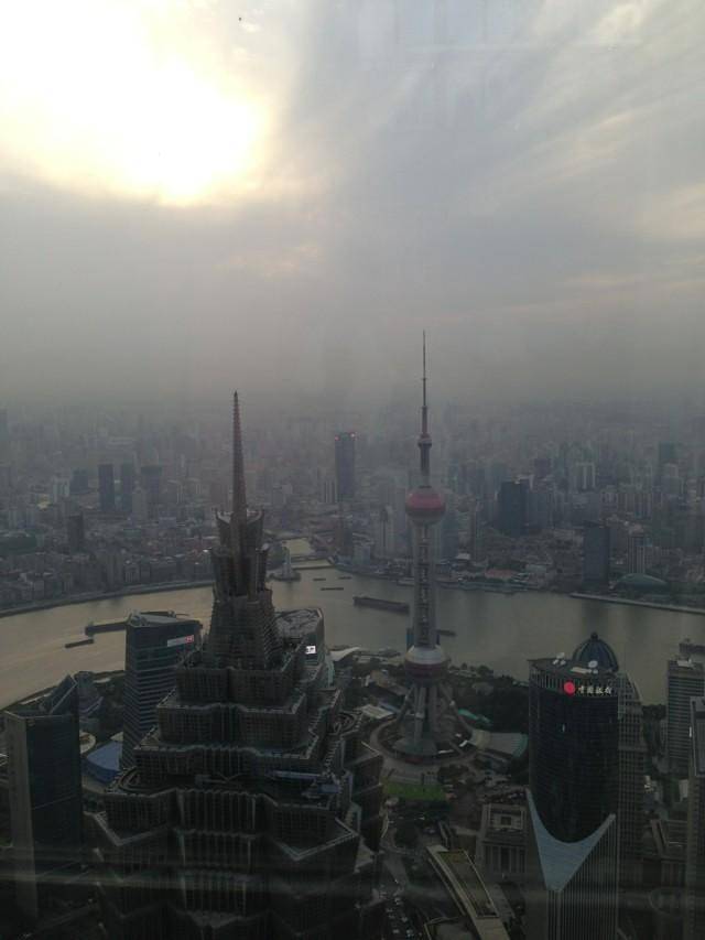 窗外的东方明珠和黄浦江。