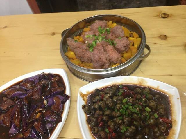 粉蒸排骨吃着不怎么样,这个茄子味道还好,螺丝跟我们那吃法不一样,我们那是单独有料汁可以蘸的。另外中午吃了什么天下第一面,好难吃啊。