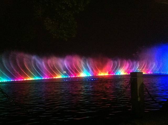 西湖边的音乐喷泉,值得一看。