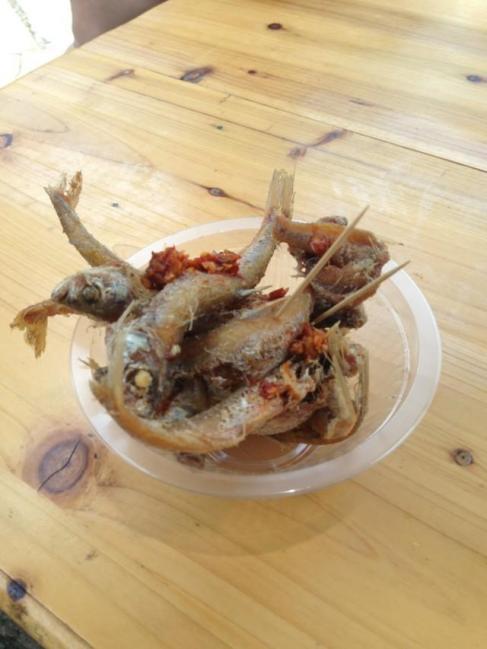 河渚街,炸的野生小鱼,味道很不错的。