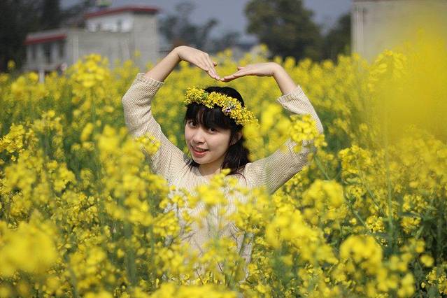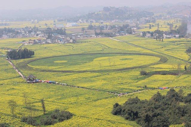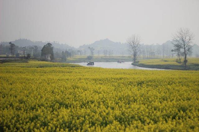 很多这样的大片大片的人很少的油菜花地,很适合照相的。