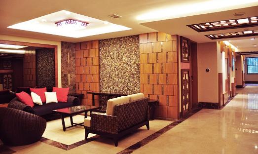 经过了解,才知道这栋楼是园区内的精品酒店(梵净山国际会议中心),里面的装饰很有特色,融合了古典和现代的艺术,别具风雅!