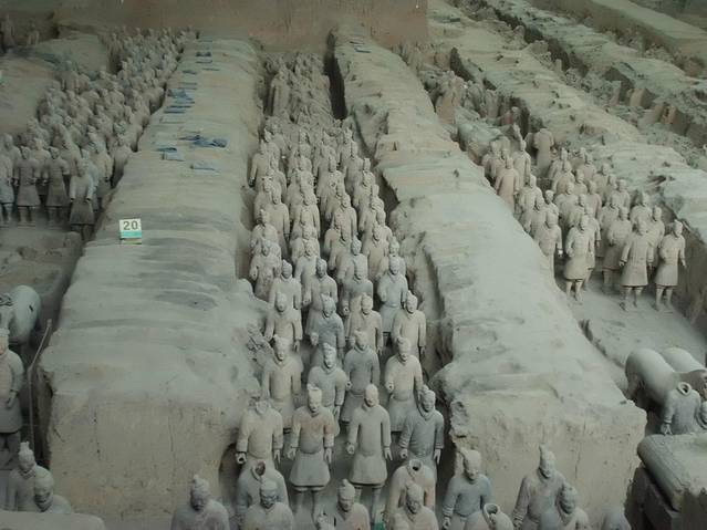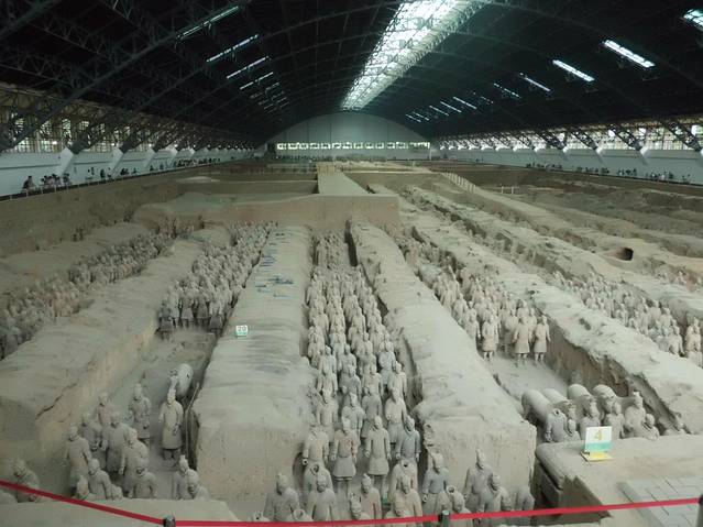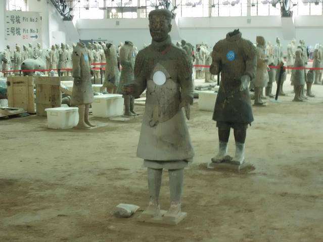 幸运地看到了还残存一点颜色的兵马俑。讲解员说15天后颜色就会消失了,真的很可惜。