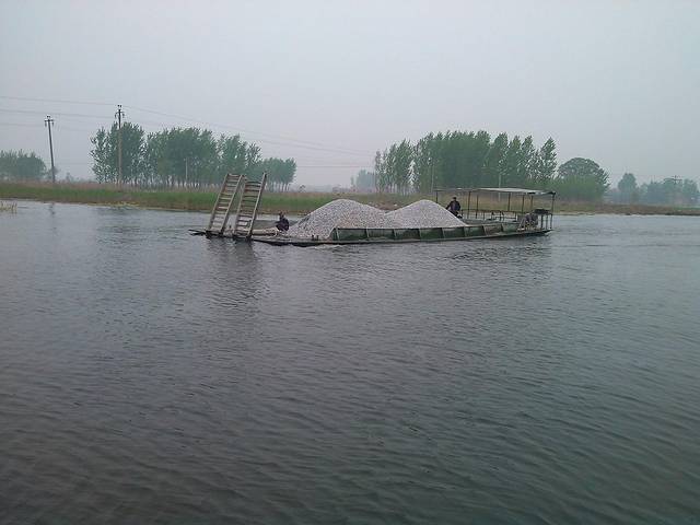 走的时候看见这里一条大船,上面都是石头子,是盖房子用的,阳阳介绍说,不管这里用什么都是这样运进来的,运费很贵,人工更贵,石头子都得是人工一点一点的用小车推下来,真的很辛苦。