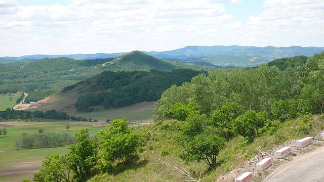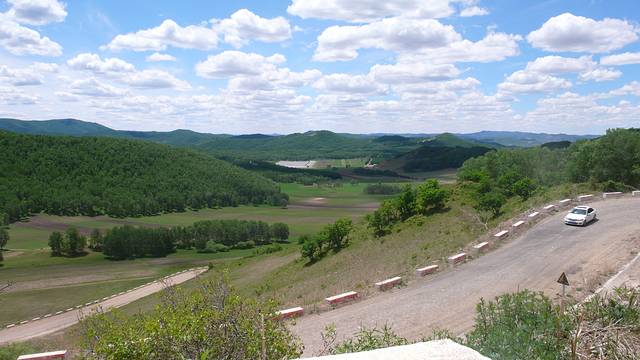 前面一大段路修的非常讲究,国道两边还有花坛,时不时有金属边框的当地风景的宣传画,很是不错。听说当地属于赤峰西部,很多矿山,所以很有钱。(可惜我开车,周围没什么突出可照的,也就没相片)。过了经棚,D经理说走山路直奔乌兰布统,时值上午,明媚的天气和煦的阳光,我们在山间小路上开始了新的深入“基层”山区的旅程!(这也是我第一次开山间小路了,真的只有两车道)