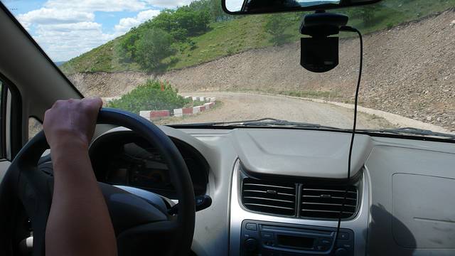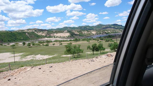 一进山有一段山间回转的上行路非常狭窄,一辆当地很普遍的小越野车超车,我缺乏经验半边下了公路到了石子路,但是速度没怎么降,对方加速超车,可能轮胎弹起来一个比鸡蛋小一圈的石头,正中前档玻璃,砸出一个裂。如果没有玻璃,我的脑袋直接就开花了。真是惊险的一幕。