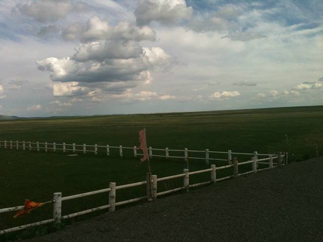出了山区,过了张北县,真正到了草原。虽然目前眼下的景致不足以让人惊艳,但是毕竟货真价实的让我感到风土和关内已不一样。(而且更加不一样的是,高速上的车完全少了。。。一般同一时间前后加一起视野内平均一辆车)