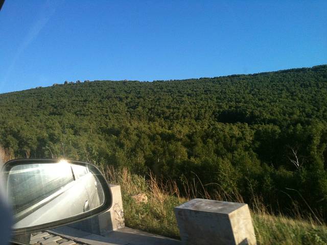 过了密林区,看到了远处应该是矿区企业,在周围的林山岔路边的加油站加了个油,听说前面快到了,但是还有很回转上下的一大段山路。之后天已全黑,伸手不见五指了。