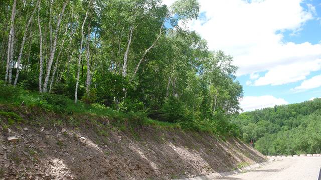 公园里果然风景很好,但是上山坡度很大,弯道也多,亏着有技术好的人。(我们的小车一开始还不给力)上了山坡,明显感觉到这边的树林真心繁茂,这包着密林的山,这个风格和这个地理位置,我想就是大兴安岭山系最南的延续。(不禁觉得这边的地形地貌还是很丰富的)