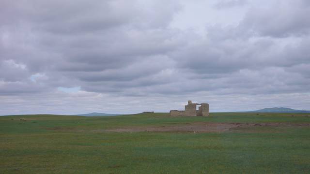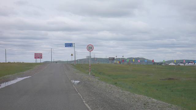 最终我们跟随着路边见多的很多车,穿过了修路的那段(有一段似乎是在草地上开的。。),到了完全开阔的环境,从远处看到了一个大的蒙古包形状的建筑,以为是游客中心或者景点大门。最后好像也不是。但是无疑我们已经到了乌兰布统,康熙与准格尔的战场,据说这里的地上至今还可能找到箭簇。