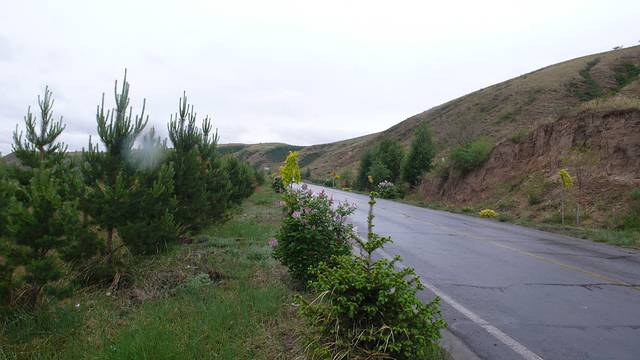 下一个路段和省道平行正在修的是高速,高速一段一段的不通。所以开的很穿插。但是这边路况非常好了,两边山丘的草色也非常不错,略有瑞士那种国家画中游的感觉(偶尔能看到牛,车也是偶尔能看到,但是人真的很少几乎看不到)