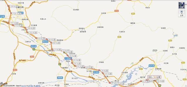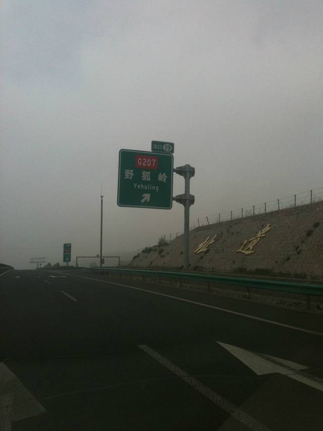 两条高速正好构成张家口南、西外环。上面写着限速60,于是我很守规矩的开了老半天。由南外环到西外环的,高速后的第一个弯,也拐对了。张家口毕竟也是工业城市,可以看见市区里面很多烟囱。