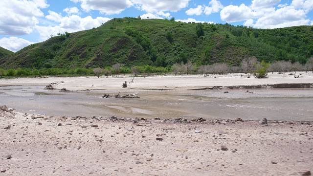 后来以为能从南边有路绕到下到湖里的地方,就尝试着进去了,没想到道路非常窄,路况非常颠,基本只能开15麦否则就颠地车后面的人无法睡觉了。