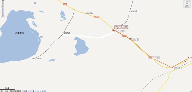 错误的开了半个多小时,从湖东南快到了西南,路上右面一直有拦阻网,当路还被一群无人看管的牛群拦住了差点走不了,牛群总是要攻击我们的样子。