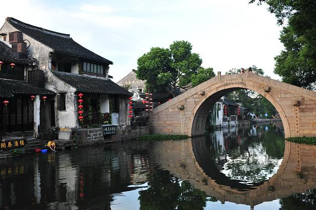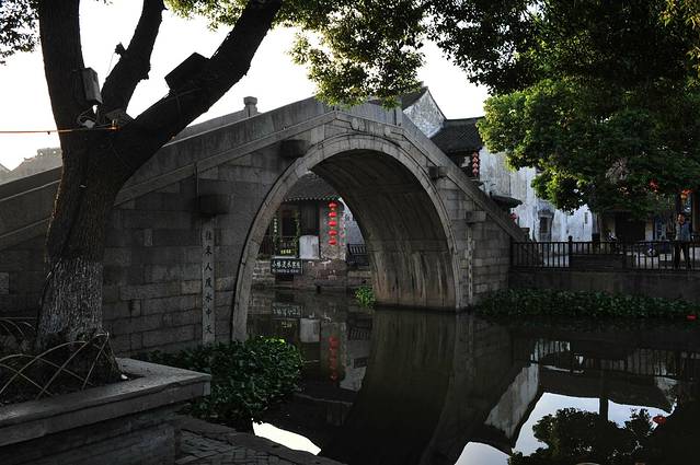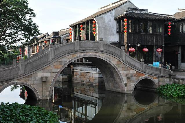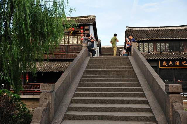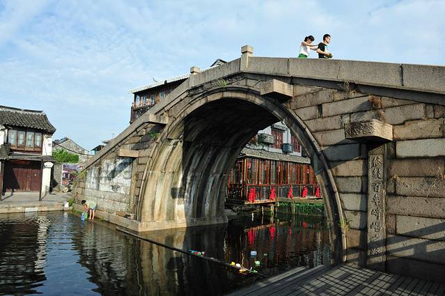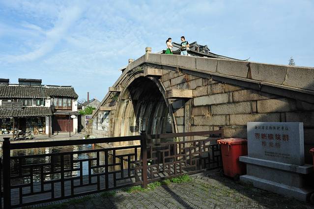 初到西塘,在西塘行走的时间里我几乎是不停地按着快门,因为这是我旅行的快乐。用第三只眼睛看世界,是我旅游的乐趣和意义所在。无法想象让我放下相机去旅行,我该是怎样的无措与无奈。 在西塘行走的拍摄中,我疯狂地拍了水,拍了船,拍了棚,拍了屋,拍了人……,这一切是那么的新鲜和美丽,渐渐地发现西塘美景除了流水、长廊、小船和人家之外,更多的故事是桥。我以为记录下了很多能够让我记住的西塘,让我能够回味不尽的西塘,但在我回望时却发现,连接西塘最重要的内容还是桥。 据说,小小的西塘镇竟有各式各样的桥近百座,非常有名的桥也有十几座。百度“桥”,是这样解释的。“桥”是一种用来跨越障碍的大型构造物。确切的说是用来将交通路线 (如道路、铁路、水道等)或者其他设施 (如管道、电缆等)跨越天然障碍 (如河流、海峡、峡谷等)或人工障碍 (高速公路、铁路线)的构造物。桥的目的是允许人、车辆、火车或船舶穿过障碍。桥可以打横搭着谷河或者海峡两边,又或者起在地上升高,槛过下面的河或者路,让下面交通畅通无阻。 接下来,在西塘行走的日子里,我更多地关注了西塘大大小小、形态各异的桥。西塘古镇河流纵横,桥梁众多,几乎每一座桥的背后都蕴藏着悠久的历史和感人的故事。其中最著名的有卧龙桥、五福桥、送子来凤桥、安境桥。桥,是西塘历史文化的一个重要组成部分,是西塘历史文化的精粹。读懂了西塘的桥,就读懂了西塘的历史文化……。