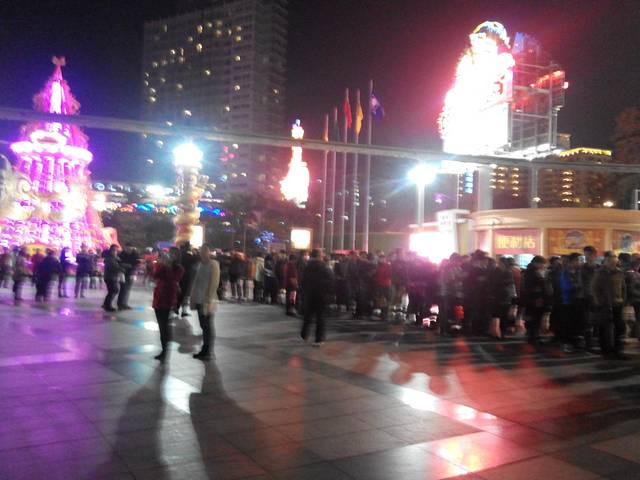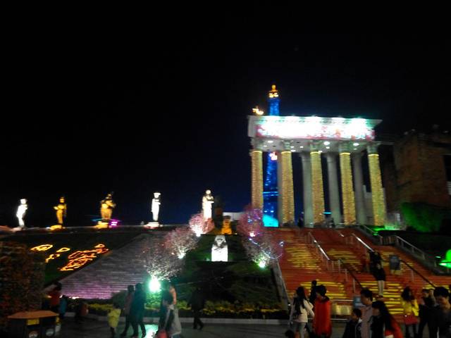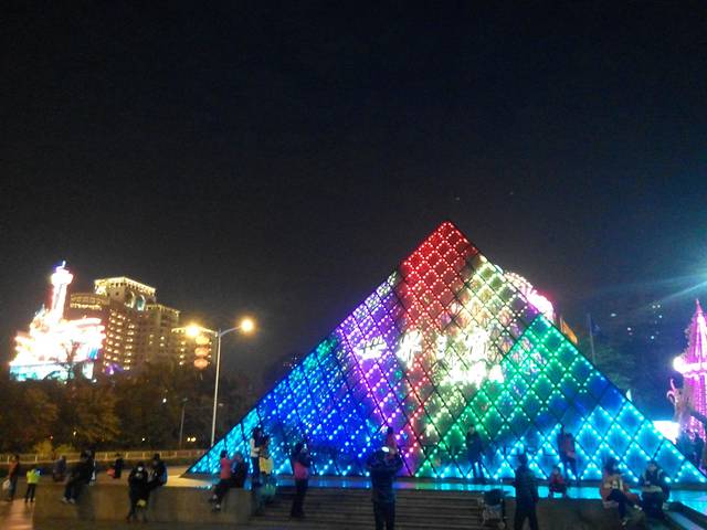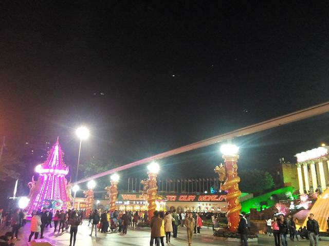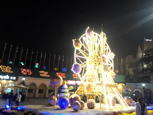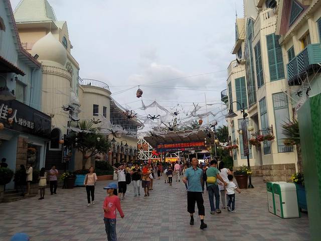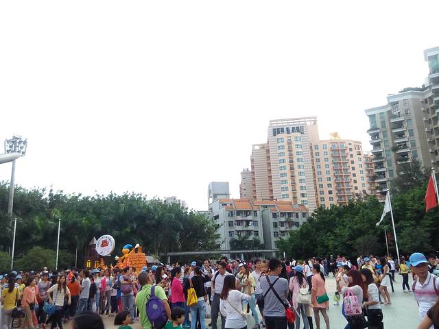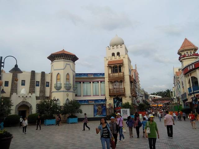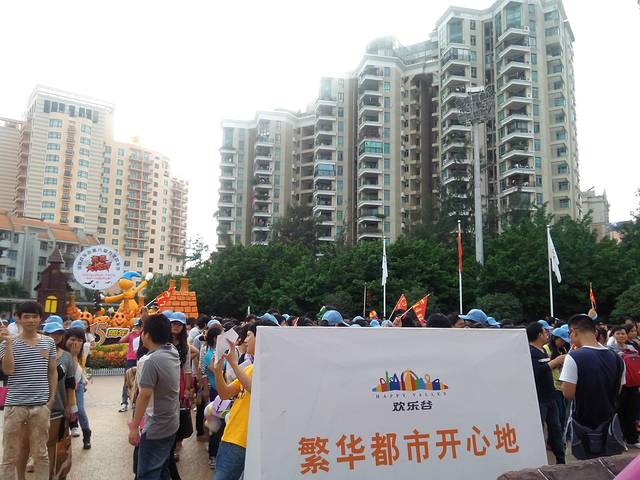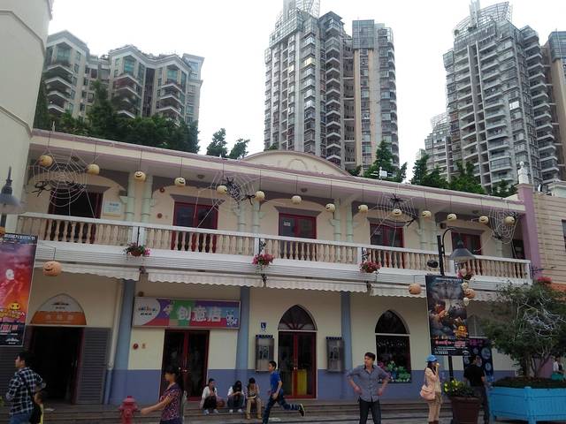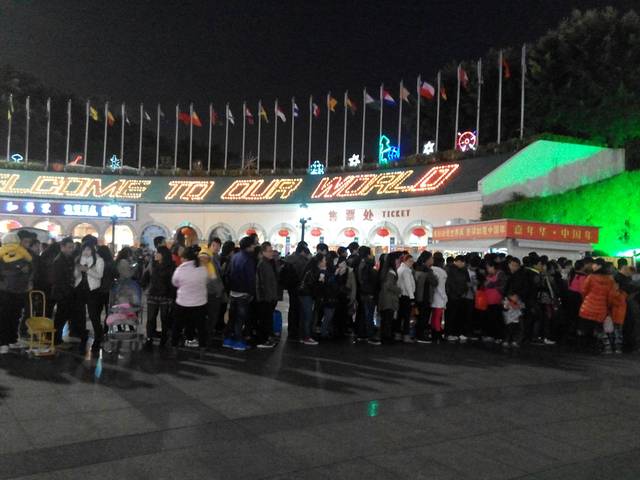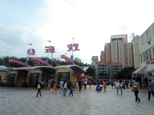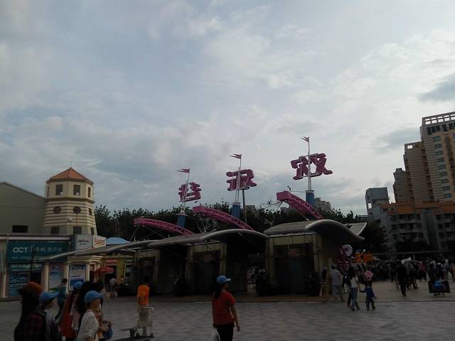 出了世界之窗往左手边走,走到红绿灯过马路就可以看见吃饭和住宿的地方了