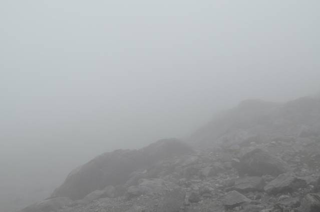 山上雨一直不断,雾很浓重,能见度很低,再加高反,我就没登顶,在海拔4506M处等待朋友归来。