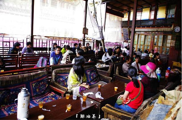 一走进便是制作酥油茶与甜点的作坊,一股浓郁的羊骚味儿,再往里走才是这个茶厅。这儿的酥油茶非常出名,来喝的人的确很多,可惜着实不合我的口味。座位边时不时传来牦牛味,捏着鼻子坐下品尝可能才会感觉环境不错。