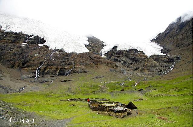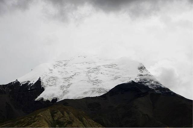 卡若拉冰川背靠西藏四大神山之一的乃钦康桑峰(7191m)南坡,冰川上部为一坡度较缓的冰帽,下部为两个呈悬冰川形式的冰舌。