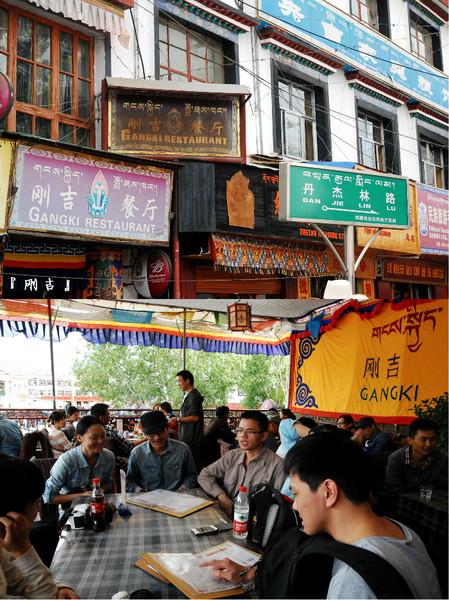 下午小睡了会,便被电话呼到了仓姑寺品茶,所谓正宗的酥油茶。打的到八廓街,在心跳加速无法快走的前提下,绕了又绕,终于给找到了这么一个偏僻的地方。