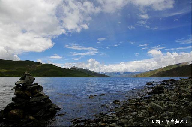 几日行程下来最美丽最圣洁的当属羊卓雍措了,蓝天白云碧水,其实真的无法形容这湖水的颜色,太美了。