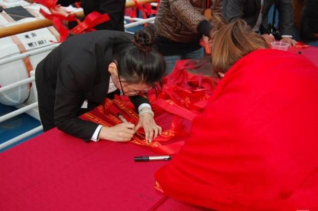 登上甲板,海风吹拂脸颊,天气有些阴沉,正好赶上游轮拜日祈福大典,每个人都在心中默默祈福,家人平安健康,身边的朋友幸福快乐。有一种童话,因为美丽,所以相信。而我和他们一样放飞手中的气球,看他们随风飘向远方,也许他们会一直飘,飘到日出升起的地方,太阳神就会把恩赐给予放飞的人,所有人的愿望都会实现。