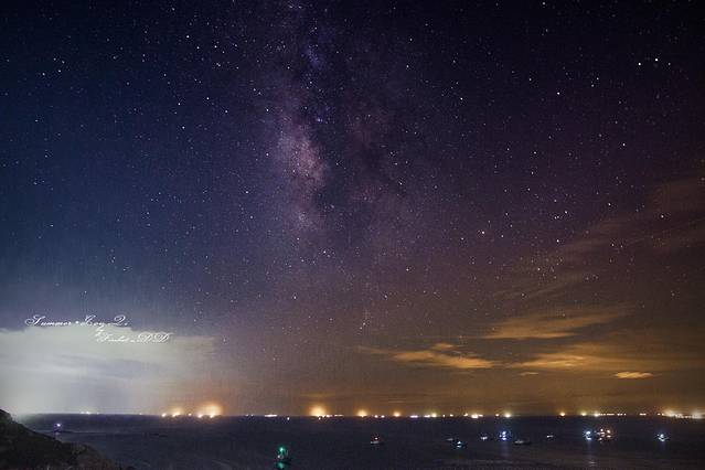 步行3分钟可以到达沙滩,夜晚的嵊泗沙滩还是比较热闹的,路边上摆了好多烧烤摊,沙滩上可以看到有人放孔明灯,烟花。