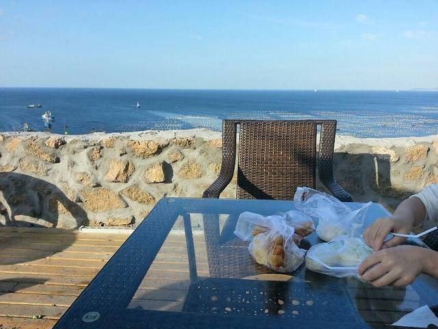 9月份是淡季了吧,一路上基本很少看到游客,乘坐小面包车,我们前往传闻中的阡陌客栈,码头靠岸旁边就是大王沙滩,离阡陌开车10分钟,司机说远处醒目的黄色的房子就是阡陌,怀着急切的心情,我们走过蜿蜒的小道,倘若没有醒目的标识,我想这个神秘的地方应该很难找到吧。眼中的阡陌,有着地中海的风情,独有情调的露台,可以观光岛下的全景。这世外桃源般的景色,让我突然觉得提前一个多月订阡陌还是值得的。