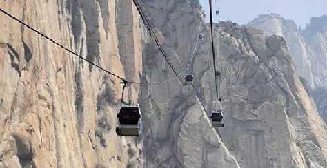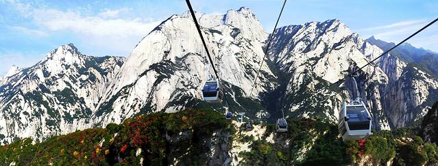 开始坐索道喽,西峰索道不同于普通的缆车,是在悬崖绝壁上建造的,18分钟直达西峰,宏观的欣赏华山的奇险峻秀,是来华山不可错过的体验。风景超级霸气!