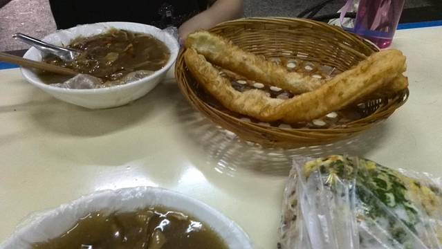 胡辣汤泡油条。第一次吃,味道蛮好的。胡椒味很浓。