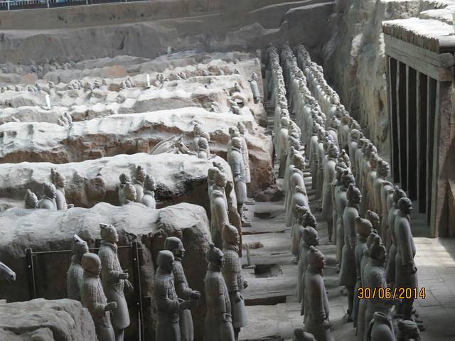 坐上直达兵马俑的大巴,一个多小时到达兵马俑,本来可以从一个小门走进去然后走一段路就可以到售票厅,但遇见没良心的黑的和我们玩文字游戏,作为一个外地游客,我真心为西安人感到惭愧,因为他简直不是一个黑可以形容。