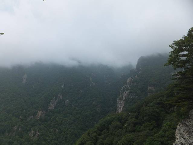 因为有阵雨,山中雾气蒙蒙