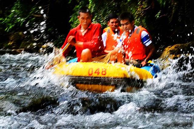 因为有过阳朔漂游遇龙河的经历,而且时间又都是两个小时左右,于是我就想当然地以为此漂流即那漂游了。我甚至很天真的问导游能不能带吃的上船,甚至把导游关于要换拖鞋带雨衣的注意事项又当成了另一次危然耸听。