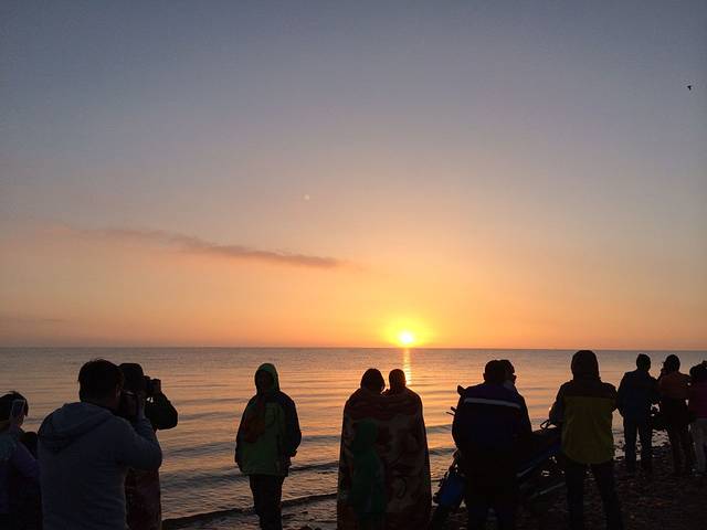 青海湖日出。早上5点起床,住的地方在青海湖对面,奇石国际青年旅社,马师傅家开的客栈,一大早马师傅就开车带我们去看日出。